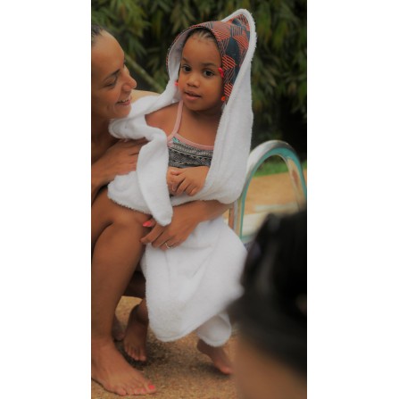 Enveloppez votre super Zébreau dans sa cape de bain toute douce ! Constituée d’un large carré de tissu éponge bio (certifié GOTS) et d’une capuche en wax, la cape de bain Baby Sy saura réchauffer et sécher avec style votre bébé.