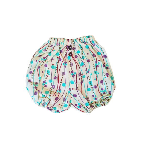 Les Bloomers de Baby Sy sont 100% wax (coton), et ornés de deux boutons en noix de coco. Confortables et pratiques, ils s’accorderont à merveille avec vos bodys préférés ou nos brassières assorties !