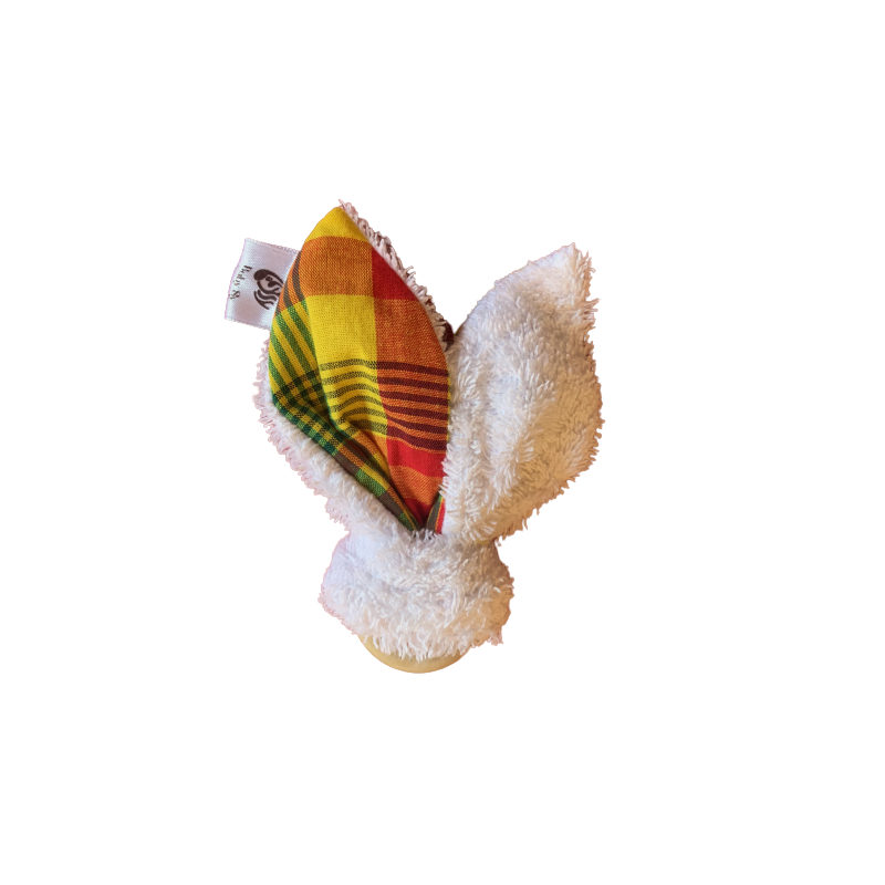Votre petit zébreau est constamment à la recherche de quelque chose à machouiller ? Offrez-lui ce petit hochet/anneau de dentition design. Constitué d’un anneau en bois de hêtre résistant à la salive et d’un morceau de tissu en éponge bio certifié GOTS et d’un morceau de wax fait en Côte d’Ivoire