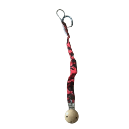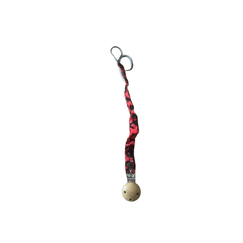 La teuteute de bébé a tendance à se faire la malle ? Pas de panique, Baby Sy a la solution : ses attaches-tétines. Composée d'un morceau de wax, d'une pince en bois et d'un bouton en noix de coco, l'Attache-Tétine Bois de Baby Sy allie élégance et praticité. A machouiller sans modération.